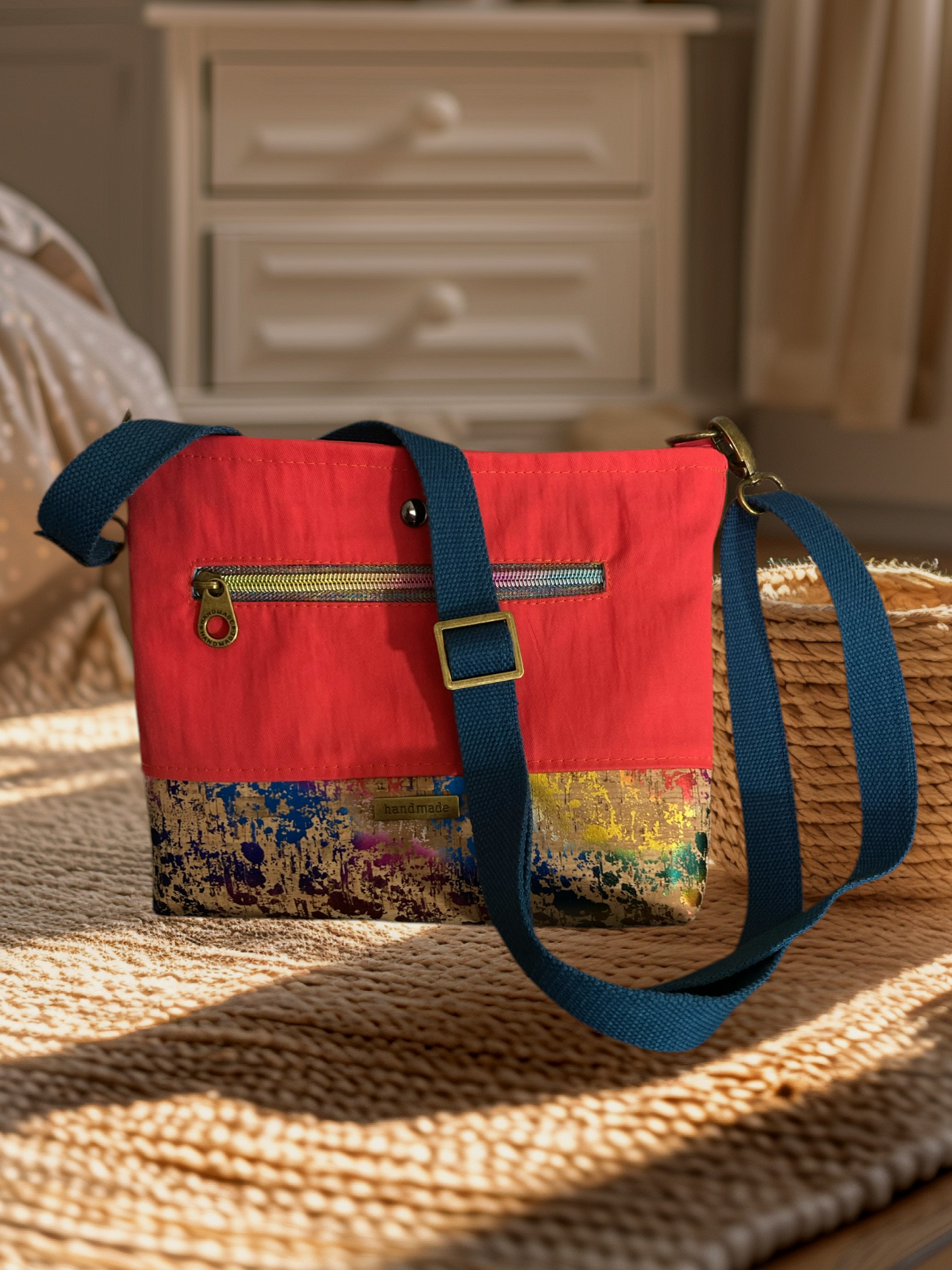 Introducing the Lola Bag - your new go-to for style and function! With its super cute two-toned design, this fully lined cross body bag boasts an outside zipper and slip pocket inside, as well as beautiful antique bronze hardware and 3 magnetic snaps for secure storage. Plus, with its unique rainbow cork and coral water resistant canvas material, you'll be sure to stand out from the crowd.